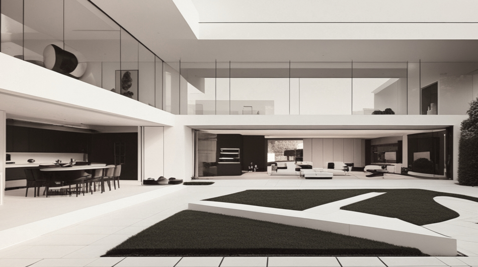 z.B. mit Design-Bad und Gäste-WC, Schlafzimmer flexibel nutzbar und als Designhaus mit raumhohen Fenstern und Glasecken